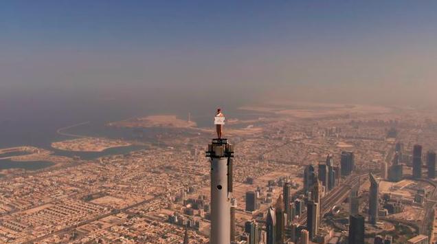 新廣告中(zhōng),一(yī)名身着阿聯酋航空空乘制服的空姐離上站在距離(lí)地面 828 米的哈利法塔頂端。此前湯姆·克魯斯和迪拜王儲哈姆謝子丹也曾站在世界最高建築之巅。